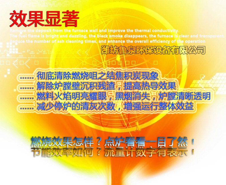 3. 解除因燃料得不到充分燃燒而爐膛壁積殘渣現(xiàn)象,提高傳熱效果,改善熱導(dǎo)率。達到環(huán)保節(jié)能效果。