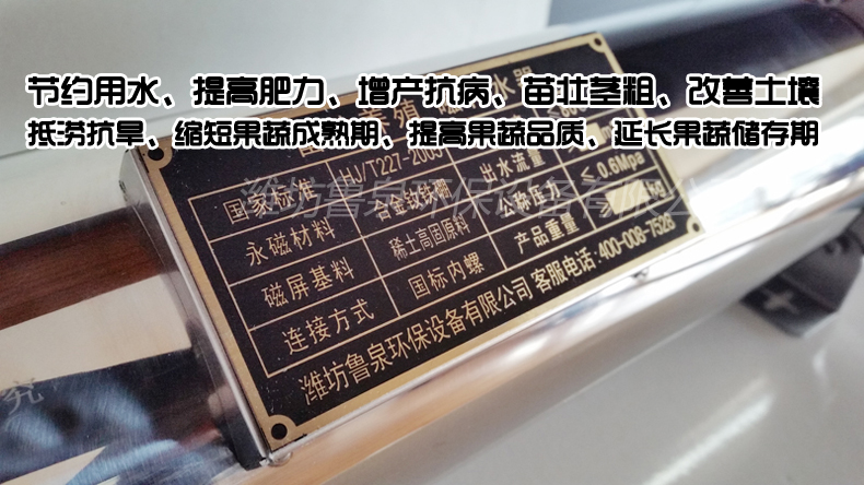 魯泉NCH現(xiàn)代農(nóng)業(yè)灌溉技術(shù)是指在農(nóng)業(yè)灌溉過(guò)程中應(yīng)用磁化發(fā)生設(shè)備使灌溉用的普通水在磁場(chǎng)的作用下,瞬間變成高效生態(tài)水,從而達(dá)到高產(chǎn)、優(yōu)質(zhì)、節(jié)水等目的。
